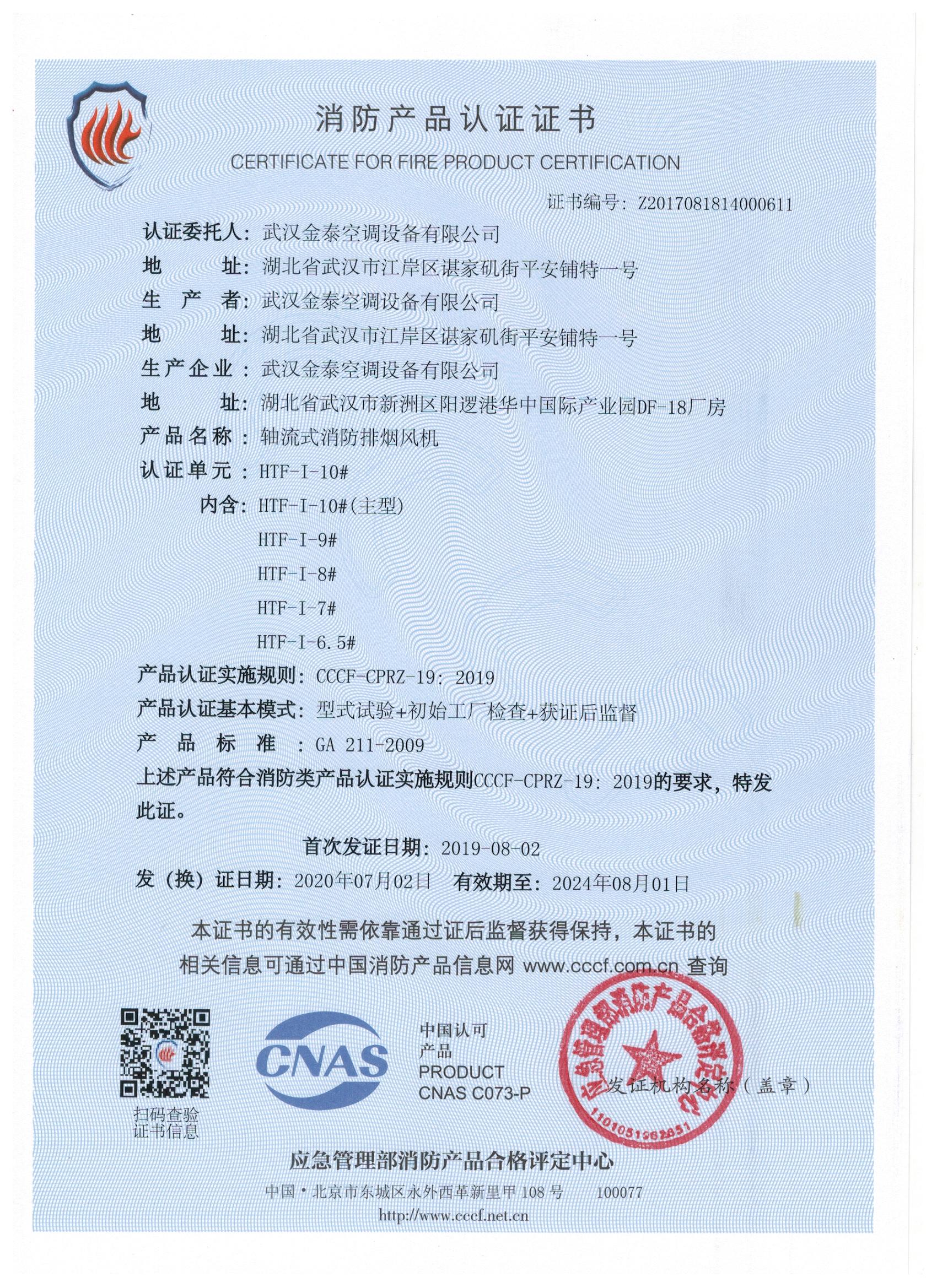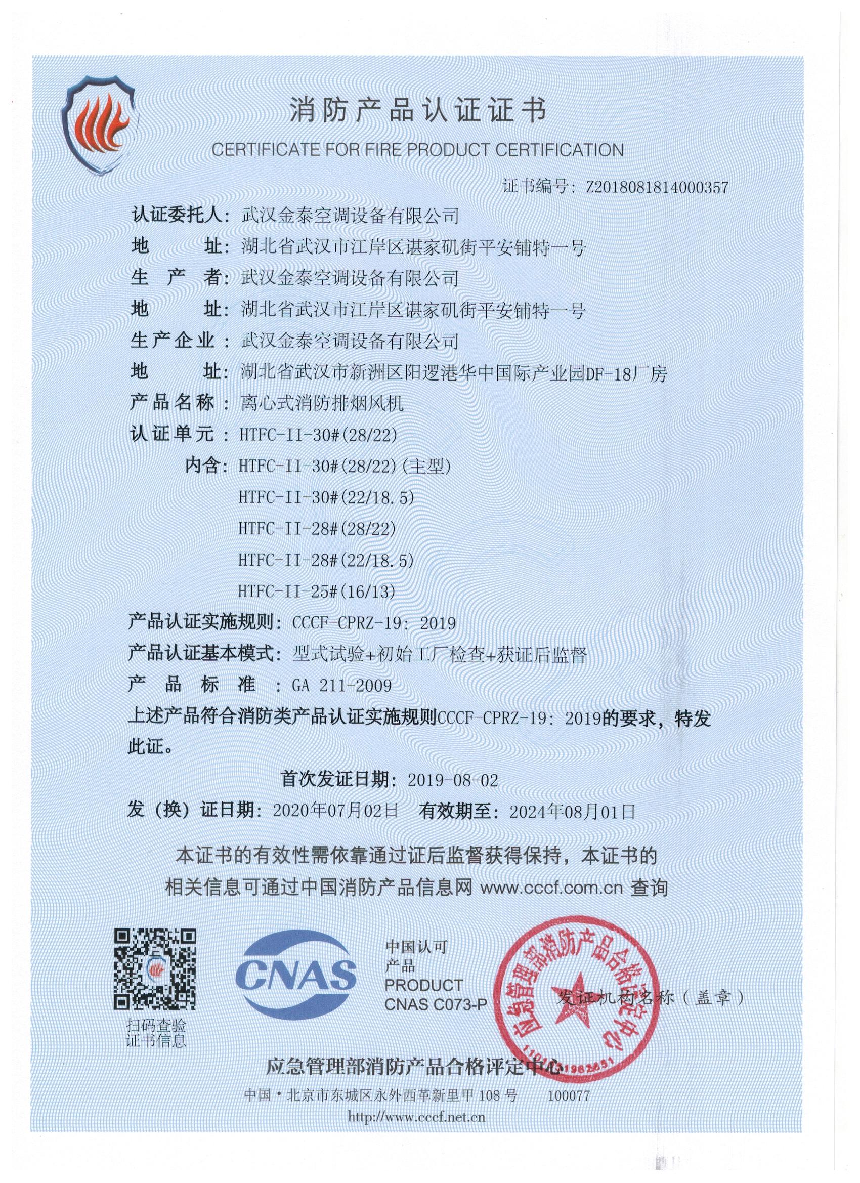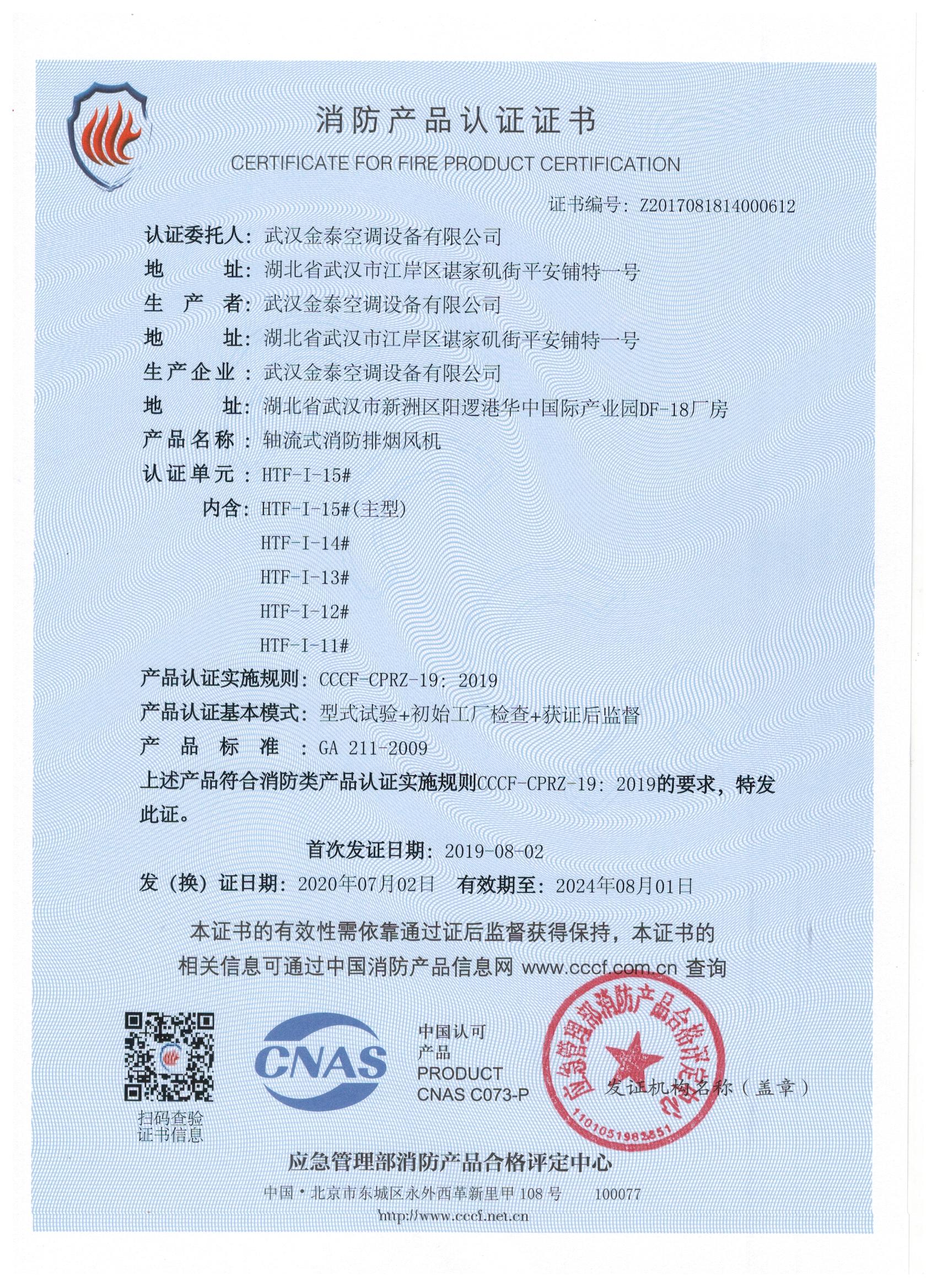 武漢金泰空調(diào)設(shè)備有限公司 是國內(nèi)長期專注于民用風(fēng)機、工業(yè)風(fēng)機領(lǐng)域的標(biāo)桿企業(yè):專業(yè)生產(chǎn)消防排煙風(fēng)機系列、排煙防火閥系列、一般通風(fēng)機系列(軸流式、離心式、屋頂式、壁式、隧道式、射流式)、風(fēng)口、風(fēng)管等消防及通風(fēng)設(shè)備。產(chǎn)品經(jīng)公安部消防產(chǎn)品合格評定中心評定符合消防產(chǎn)品CCC標(biāo)準(zhǔn);經(jīng)中國合格評定國家認可委員會認證的檢驗所檢驗合格;經(jīng)國家防火建材質(zhì)量監(jiān)督檢驗中心(四川中心)火燒實驗,耐火性能達標(biāo)。